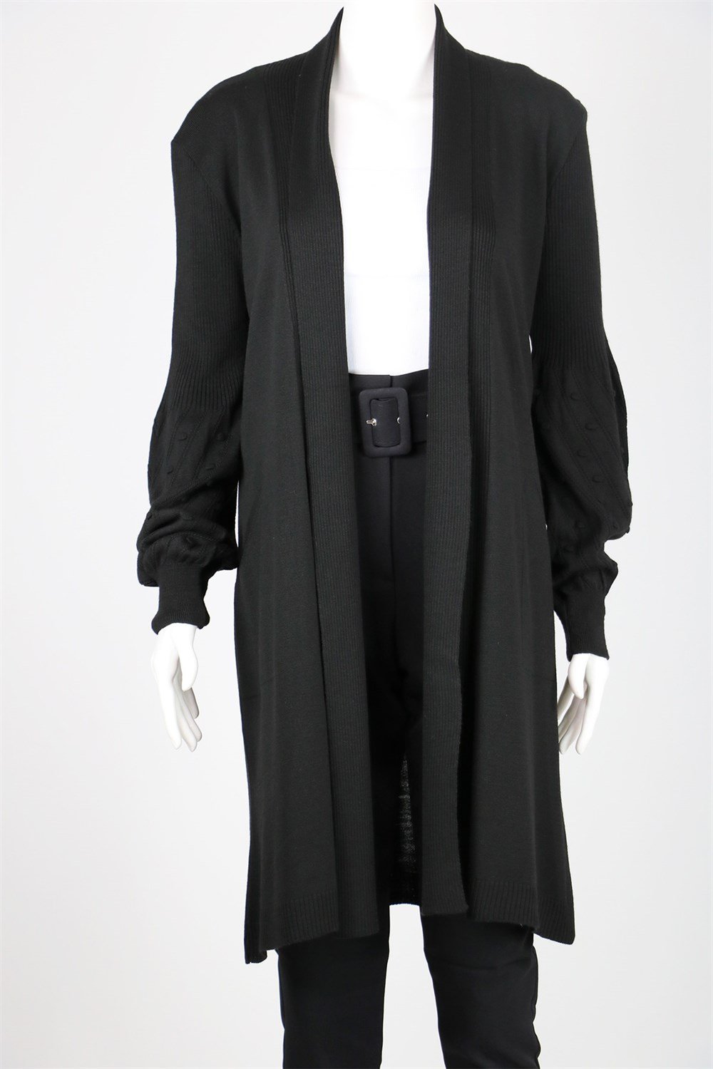 14482 Balon Kol Pıtlı Hırka - Siyah