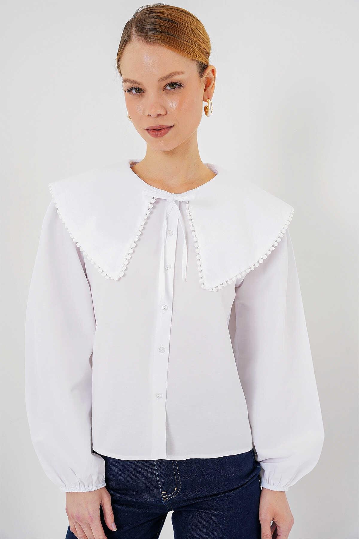 Ürün Içerigi %70 Pamuk %30 Polyester Ürün özellikleri: Kadin Bebe Yaka Gömlek Model Bilgileri Bedeni : 38 Ürün Boyu:56cm Kol Boyu:58cm Manken Ölçüsü : Boy:176 Gögüs:90 Bel:63 Basen:94 Genel Yikama ve Kullanma Talimatlari • El isi ve boncuklu ürünler hassas programda tersten yikanmalidir • Baskili ürünler zamanla dökülebilir • Yikamada ürünü bozmamak için 30 C'yi asmayiniz • Ürünü yikarken yikama talimatina uygun olarak yikayiniz • Renkli ürünlerde uygun deterjan kullaniniz • Denim olan ürünler ve koyu renkli ürünler açik renkli diger ürünler ile yikanirken boyayabilir. Birlikte yikamayiniz • Giysileri kuruturken direkt günes isigina maruz birakmayiniz