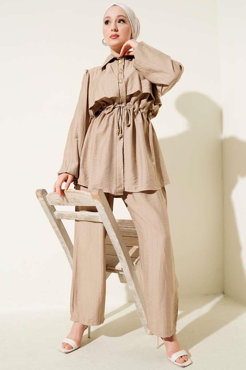 4952 Gold Düğmeli Çilek Takım - Bej