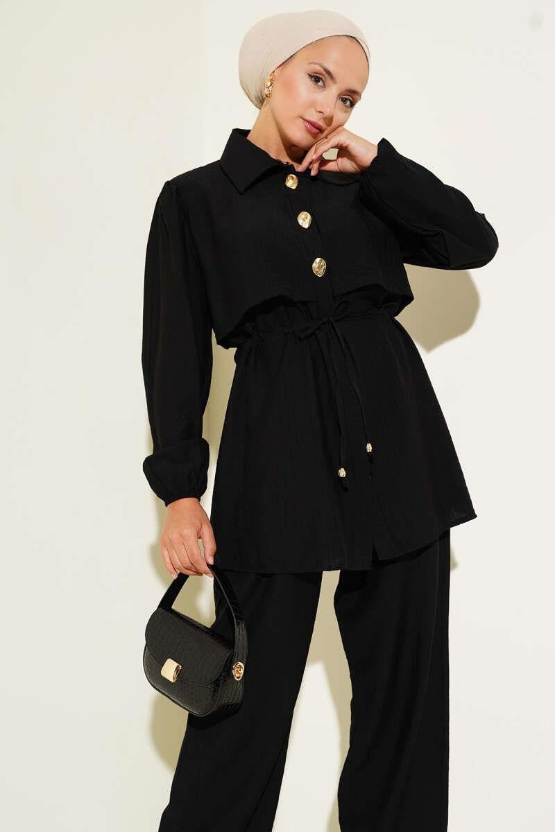 4952 Gold Düğmeli Çilek Takım - Siyah