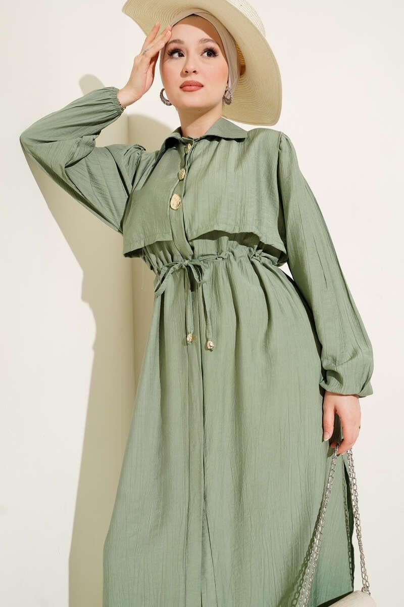4963 Gold Düğmeli Çilek Takım - Mint Yeşili