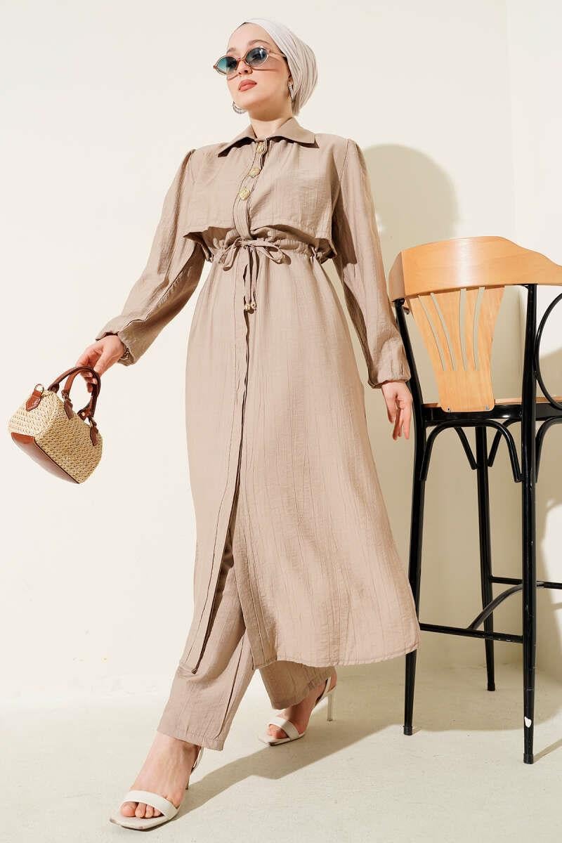 4963 Gold Düğmeli Çilek Takım - Vizon